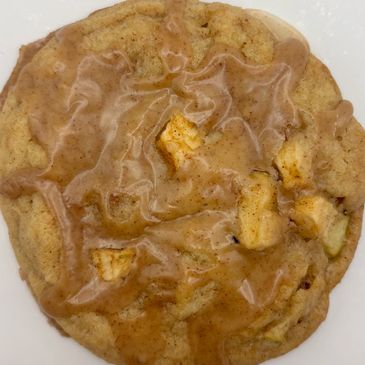 If fall had a taste, this cookie would be it! Warm, spiced dough, crisp granny smith apples throughout, and topped with a sweet glaze.