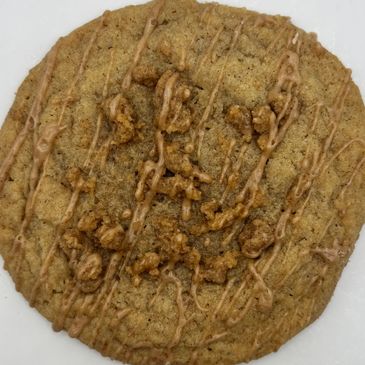 Cinnamon infused cookie dough topped with maple drizzle, and a cinnamon butter crumble. Everything you love about coffee cake, in cookie form!