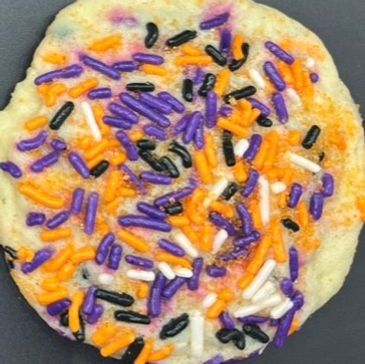 Sprinkle-infused, smooth, buttery dough. Topped with more sprinkles and orange sugar crystals. The perfect Halloween treat!